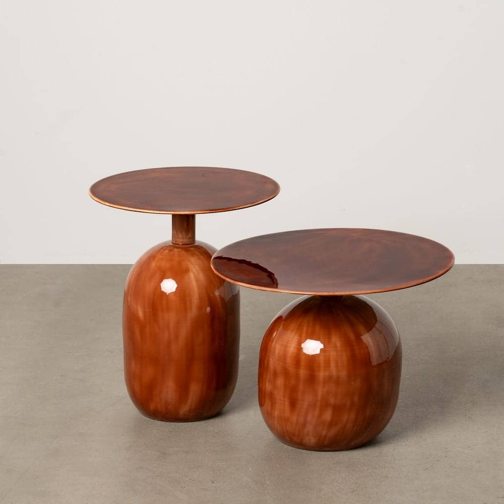 Material: hierro esmaltado. Medidas: 50x50x47cm – 40x40x57cm.
