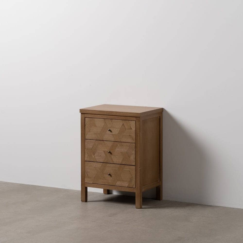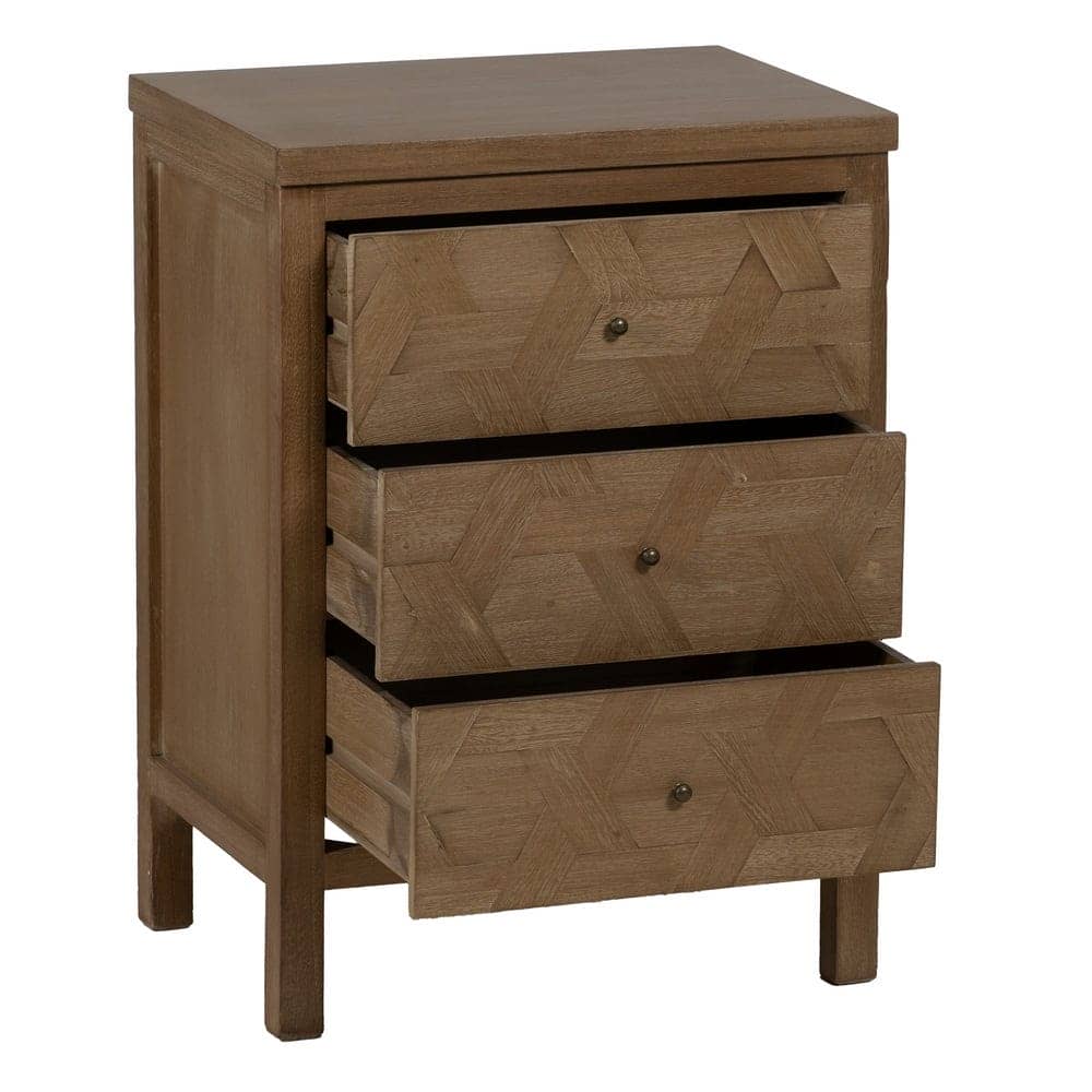 Con un diseño compacto y elegante, esta mesita de madera de paulonia y DM te ofrece una solución funcional y estilosa para tu hogar. Los tres cajones, con medidas de 40 x 15 cm, permiten un almacenamiento cómodo y organizado, mientras que las patas de 10,5 cm de altura le proporcionan un toque moderno y delicado.