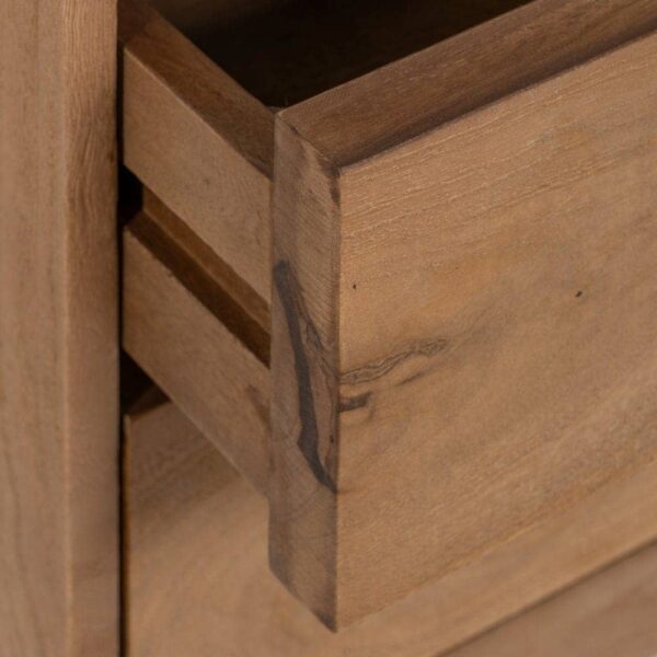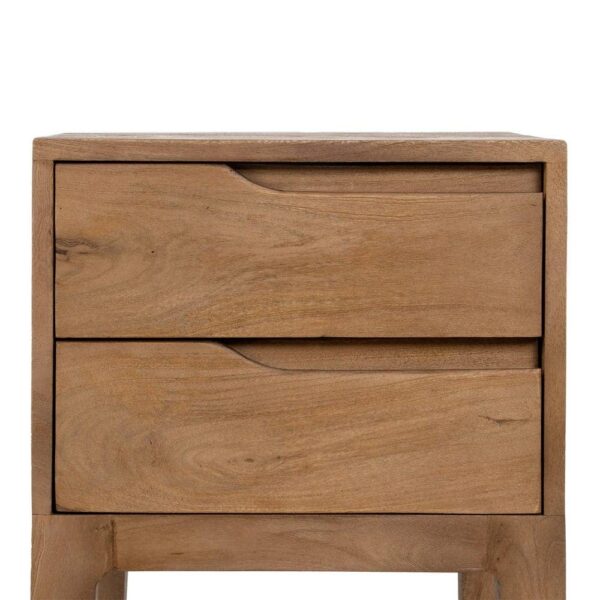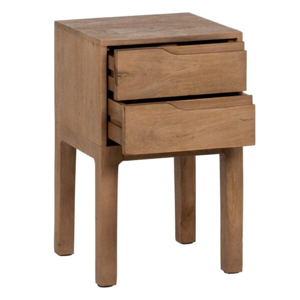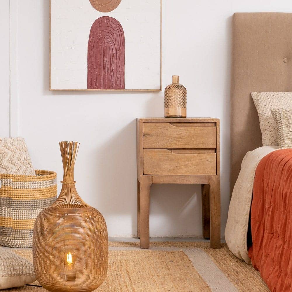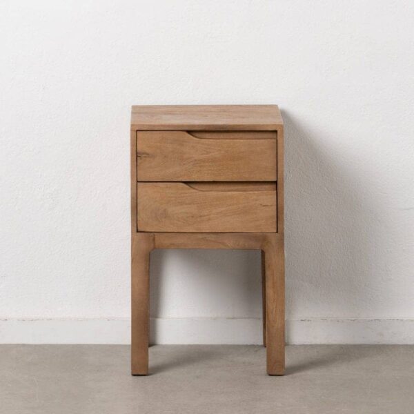 La mesita de madera de mango de 65 cm es una pieza única que combina elegancia natural y funcionalidad. Con su cajón grande de 36,5 x 13,5 cm, ofrece un amplio espacio de almacenamiento para mantener tus objetos organizados y al alcance. La estructura robusta y las patas de 33 cm brindan estabilidad y estilo a tu dormitorio o salón.