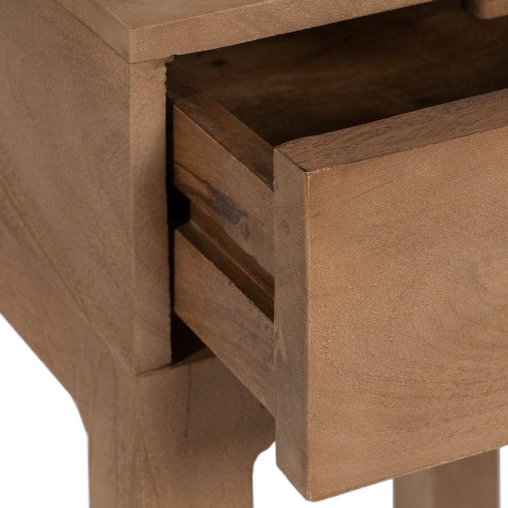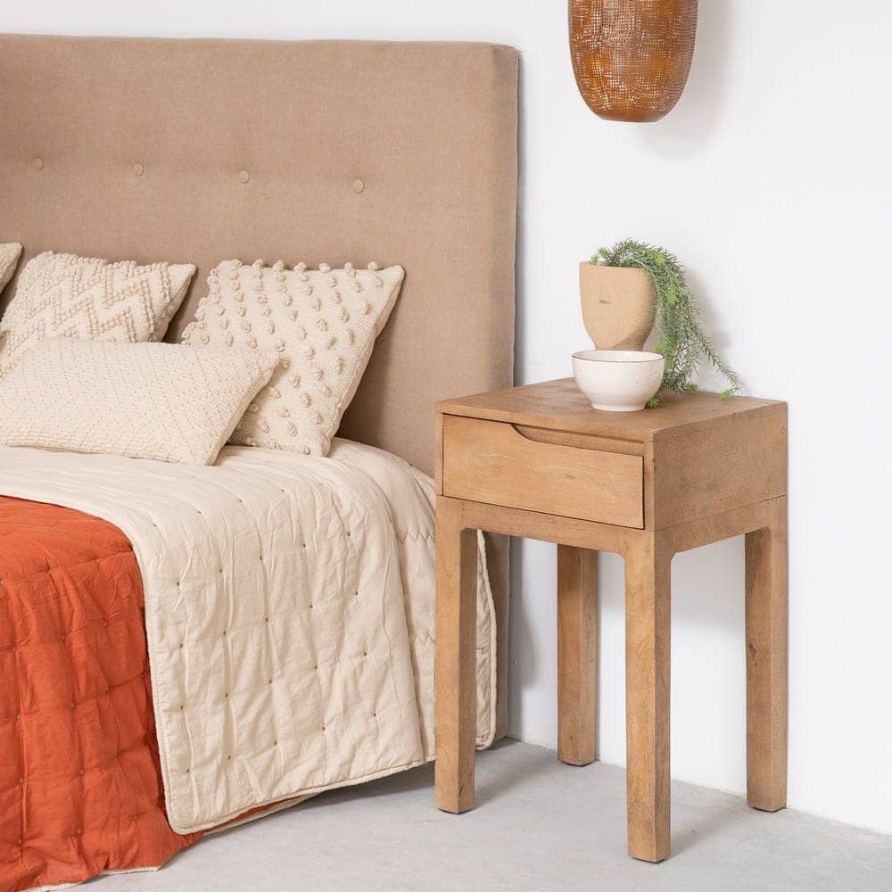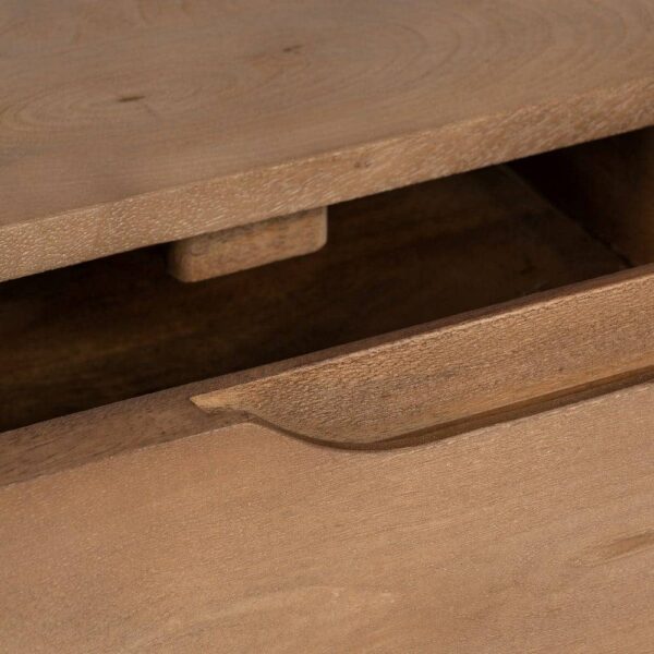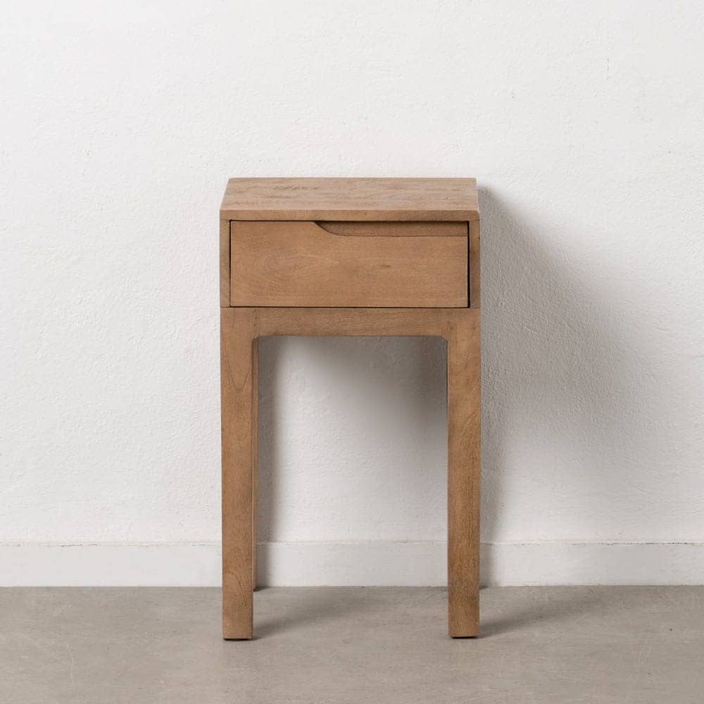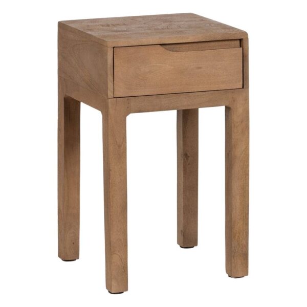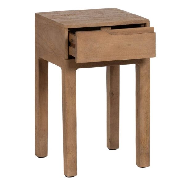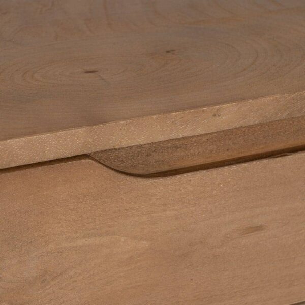 Fabricada en madera de mango, este mueble destaca por su durabilidad y estética refinada. Las patas de 47 cm proporcionan una altura perfecta para que puedas acceder con comodidad a su almacenamiento. Además, el acabado en madera natural asegura que la mesita mantenga un aspecto rústico pero sofisticado, encajando a la perfección en dormitorios, salones o espacios de descanso. Añade un toque único a tu hogar con esta pieza práctica y de alta calidad.