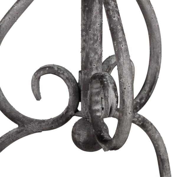 La mesita gris compacta destaca por su diseño ornamental y tamaño práctico, ideal para cualquier estancia. Fabricada completamente en hierro, combina durabilidad y un estilo atemporal. Sus dimensiones de 36 x 36 x 61 cm y su peso ligero de 2 kg la hacen fácil de mover y perfecta para espacios pequeños o como complemento decorativo. Su estructura decorada con detalles de estilo vintage y su acabado en gris envejecido aportan un aire romántico, encajando perfectamente en ambientes clásicos, rústicos o shabby chic. Ya sea como soporte para una planta, un jarrón o como pieza central en un rincón especial, esta mesita añadirá encanto y sofisticación a tu hogar. ¡Incorpora este diseño exclusivo y eleva la decoración de tus espacios!