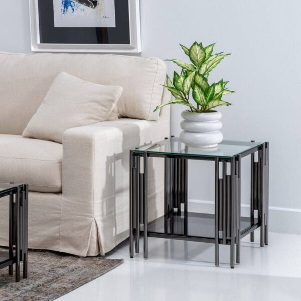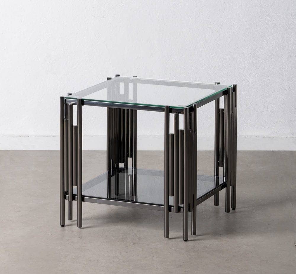 Mesita Negra de Cristal Templado y Acero Inoxidable 53,5×53,5×53 cm