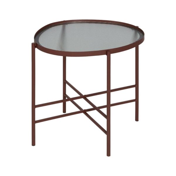 La mesita teja de metal y cristal destaca por su diseño moderno y elegante, ideal para dar un toque sofisticado a cualquier espacio. Su estructura de hierro en un tono teja combina perfectamente con el cristal que recubre su superficie, creando un equilibrio entre funcionalidad y estética. Con medidas de 55 cm x 47 cm x 54 cm, es la opción perfecta para salones y dormitorios contemporáneos.