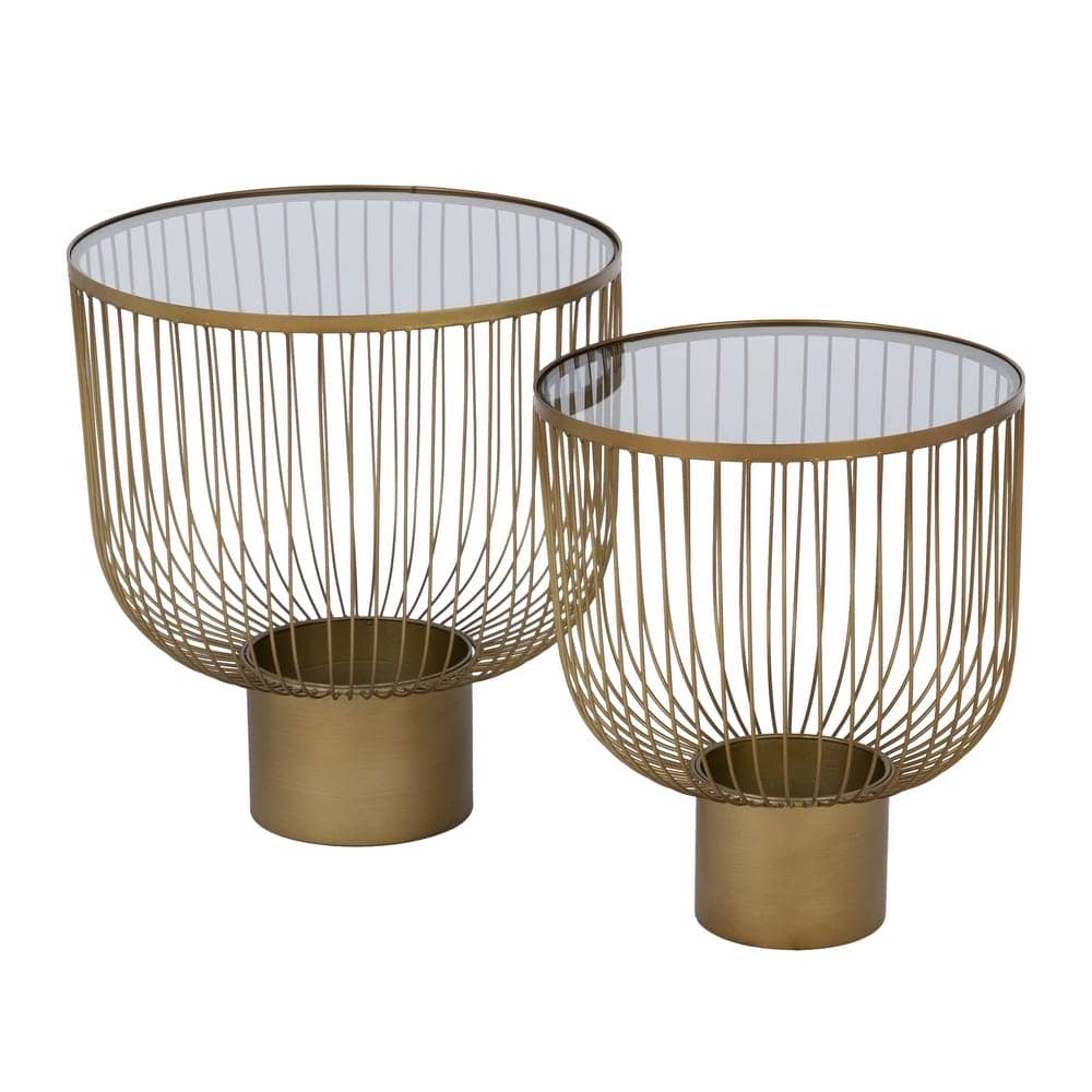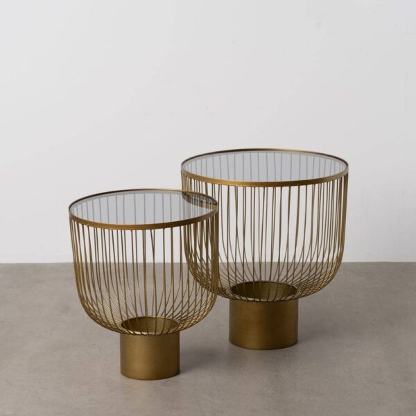 Mesitas de Metal y Cristal Oro – 50x50x54.5 cm (Set de 2)