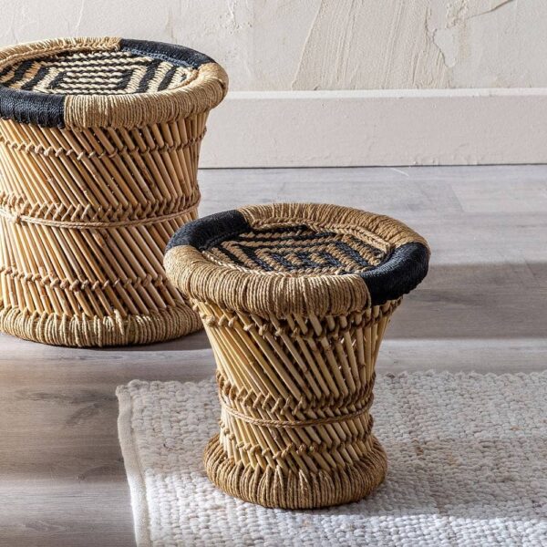 Decora tu hogar con este set de 2 mesas auxiliares de fibra natural, ideales para un toque orgánico y acogedor. Hechas de bambú y fibra natural, son perfectas para estilos rústicos o bohemios. ¡Transforma tu espacio con esta pieza artesanal y funcional!
