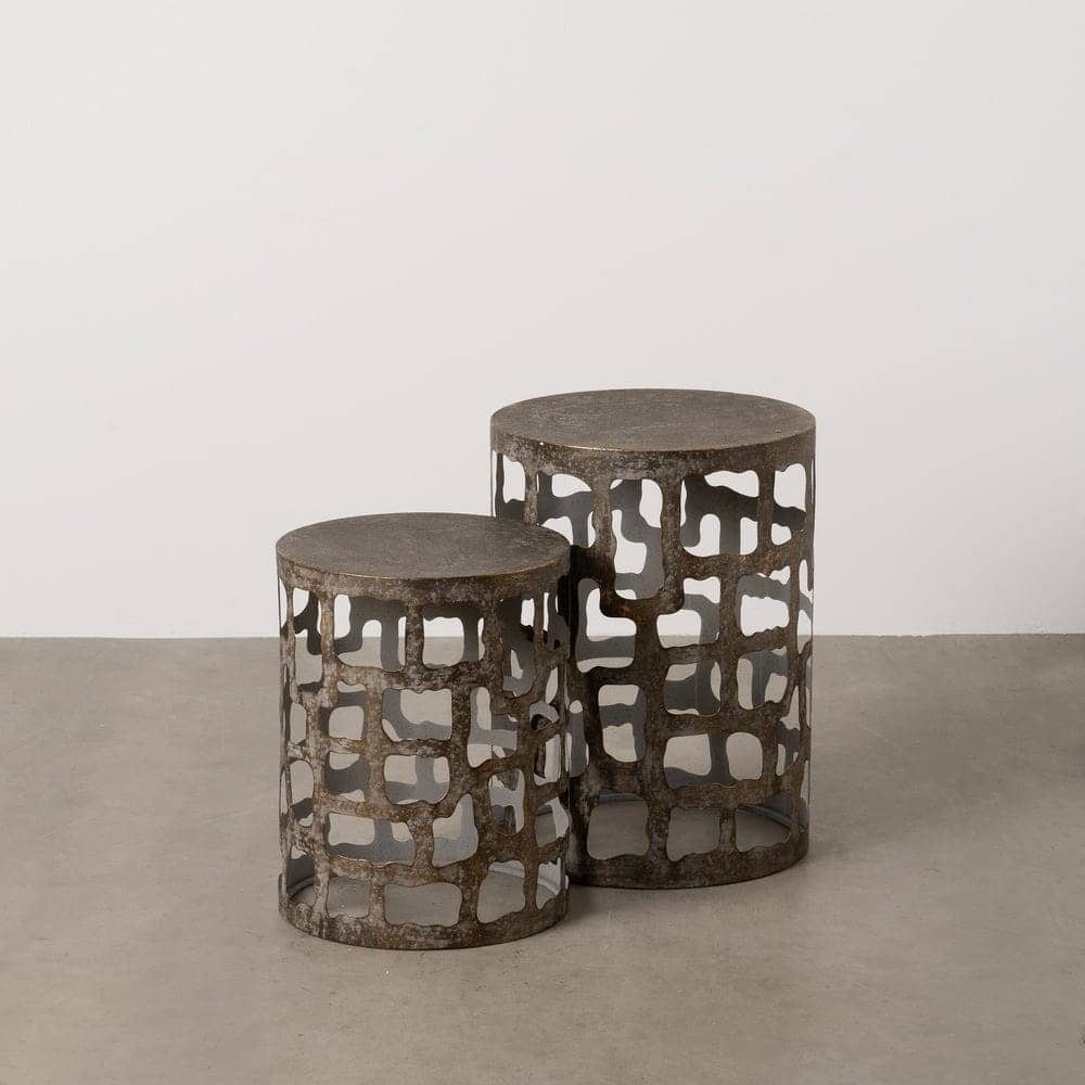 Las medidas de las mesitas son de 40,5 cm x 40,5 cm x 55 cm y 35 cm x 35 cm x 45 cm, lo que las hace ideales para espacios pequeños o como mesas auxiliares decorativas. Con un peso de 7,06 kg, estas mesitas ofrecen la estabilidad necesaria para tu hogar sin perder su ligereza visual. Un diseño elegante que armoniza con ambientes modernos y clásicos, elevando el estilo de tu espacio al máximo.
