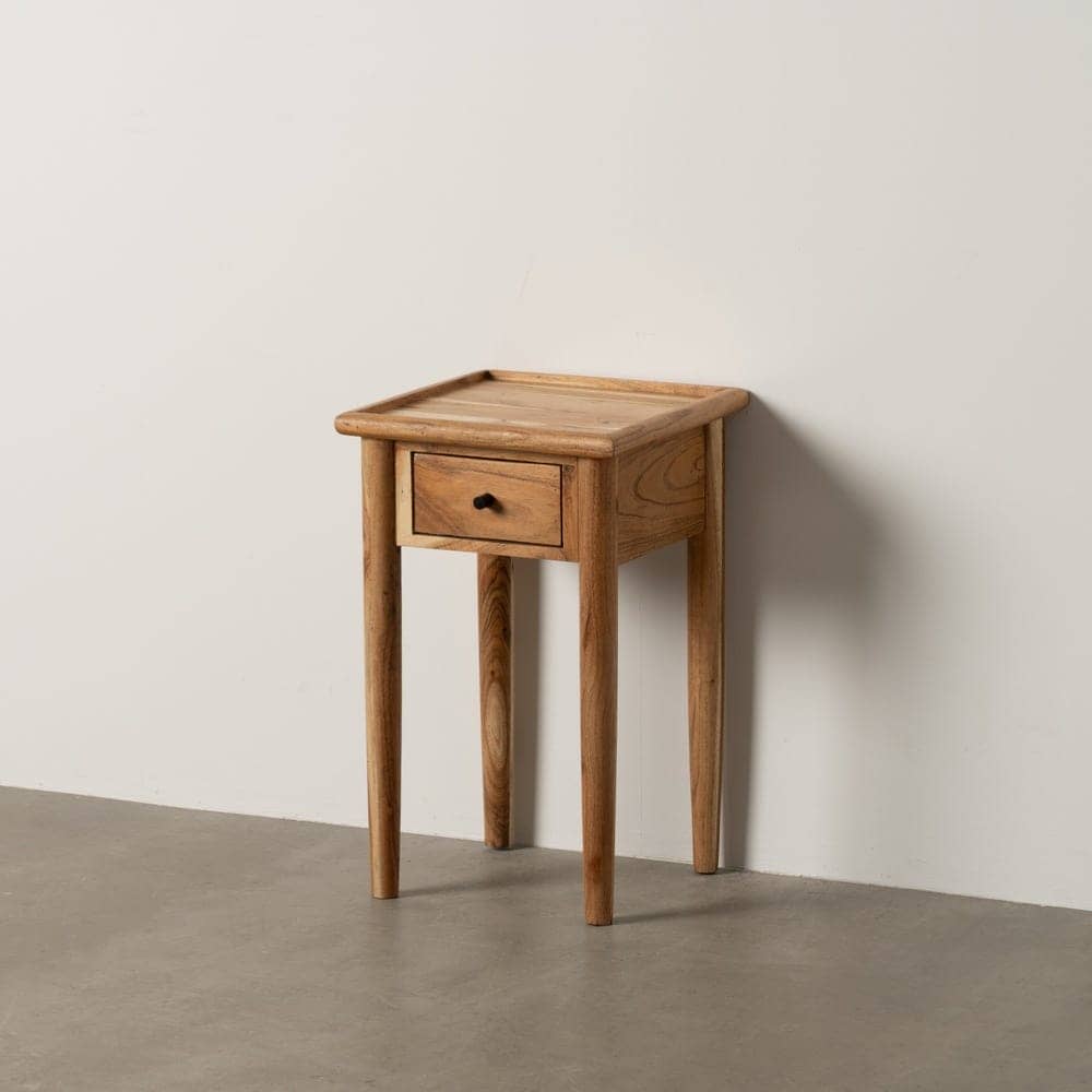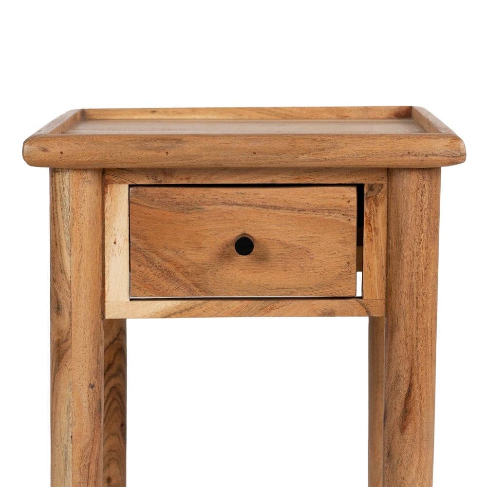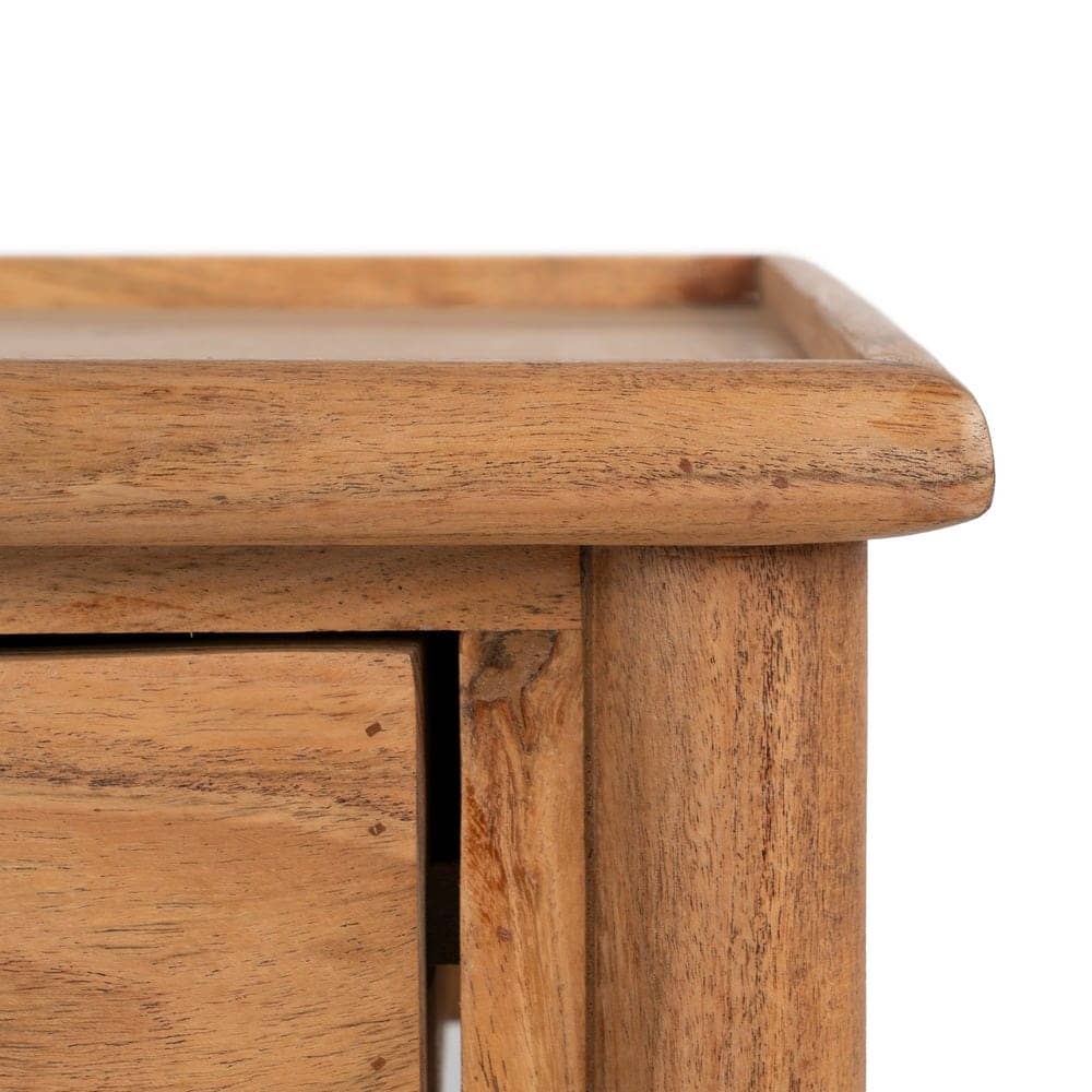 Fabricada con madera de mango, esta mesita de noche destaca por su durabilidad y estética natural. Su diseño en color natural se adapta a una gran variedad de estilos decorativos, y su peso de 8 kg le proporciona estabilidad. Ideal para tu dormitorio o cualquier rincón de tu hogar, esta mesita añade un toque de sofisticación discreta y funcionalidad.