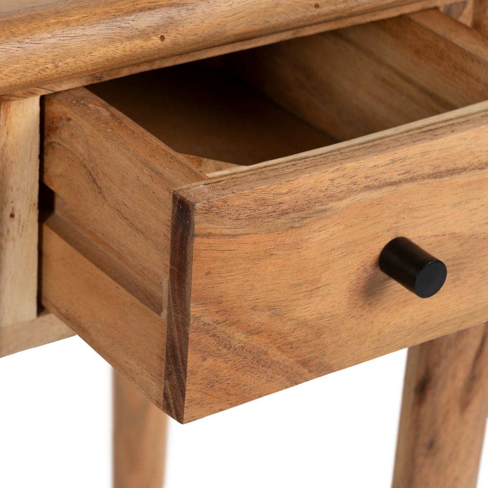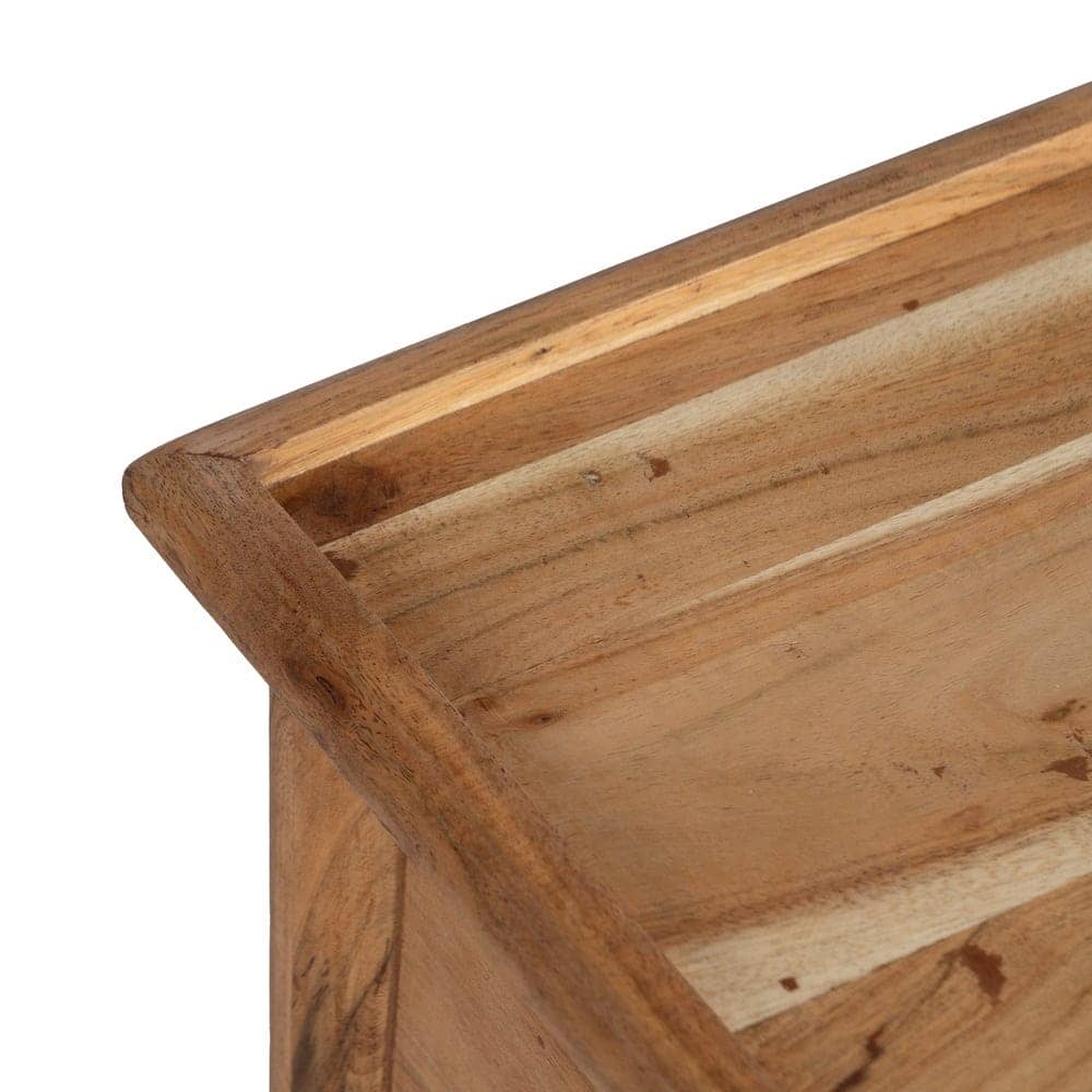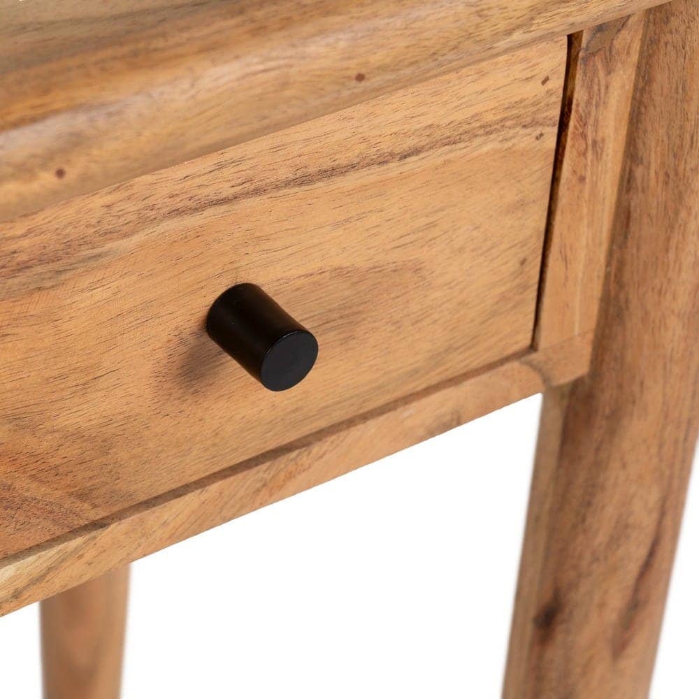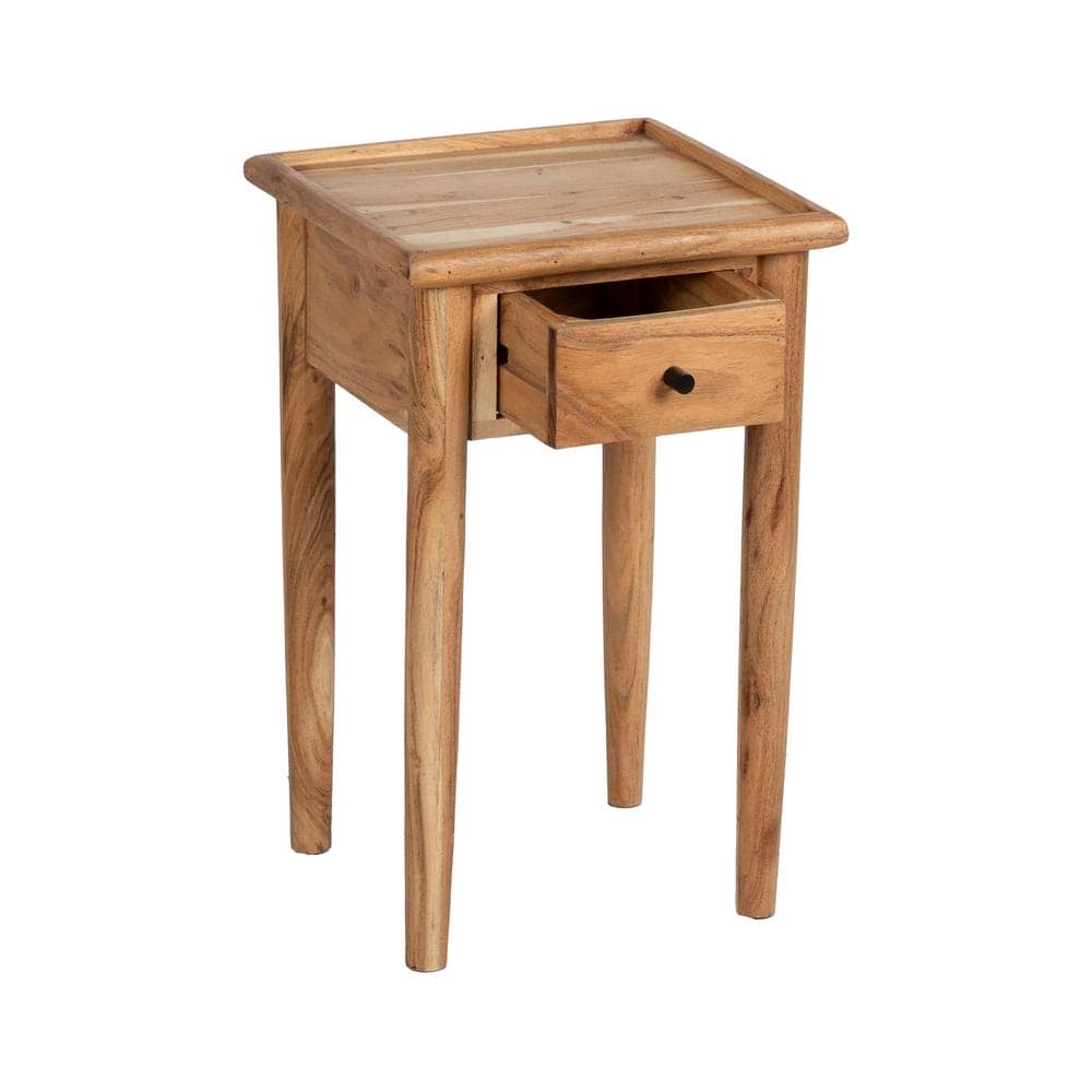Fabricada con madera de mango, esta mesita de noche destaca por su durabilidad y estética natural. Su diseño en color natural se adapta a una gran variedad de estilos decorativos, y su peso de 8 kg le proporciona estabilidad. Ideal para tu dormitorio o cualquier rincón de tu hogar, esta mesita añade un toque de sofisticación discreta y funcionalidad.