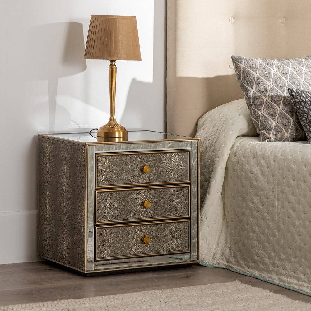 Los tres cajones, con medidas de 42×13 cm, ofrecen un almacenamiento práctico, mientras que los pomos dorados añaden un toque de glamour. Con unas medidas de 51 cm x 41 cm x 51 cm, esta mesita encajará perfectamente en tu dormitorio o salón, creando un ambiente chic y sofisticado. Su peso de 21 kg refleja la robustez y durabilidad del mueble.
