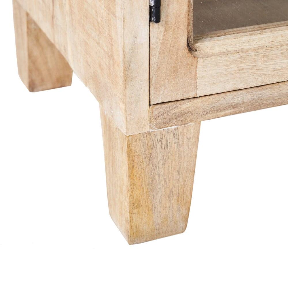 Fabricado en madera de mango, conocido por su resistencia y belleza natural, este mueble TV es una pieza única que destaca por su acabado en blanco rozado, proporcionando un toque suave y elegante. Las puertas de 38×38 cm y el diseño con cristal permiten almacenar tus dispositivos de forma ordenada, mientras que la altura de las patas de 10 cm le otorga un estilo moderno y aireado. Con unas medidas de 160 cm x 35,5 cm x 52,5 cm, es ideal para cualquier salón o espacio de entretenimiento, combinando funcionalidad y estética en una sola pieza. Añade un toque de frescura y distinción a tu hogar con este mueble TV exclusivo y versátil, que aporta elegancia y organización a tu espacio.