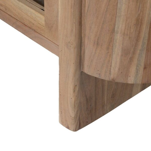 Fabricado en madera de acacia, este mueble TV tiene un acabado natural que resalta las vetas de la madera, proporcionando una sensación de calidez y sofisticación. Las puertas de 34,5×30 cm y el cristal ofrecen un contraste perfecto, mientras que las medidas de 180 cm x 50 cm x 40 cm hacen que este mueble sea ideal para espacios amplios. Las patas de 17 cm de altura le otorgan una base estilizada, añadiendo un toque moderno. Con un peso de 56 kg, este mueble es sólido y resistente, asegurando su durabilidad a lo largo del tiempo. Transforma tu hogar con este mueble TV que combina estilo, funcionalidad y la calidez natural de la madera.