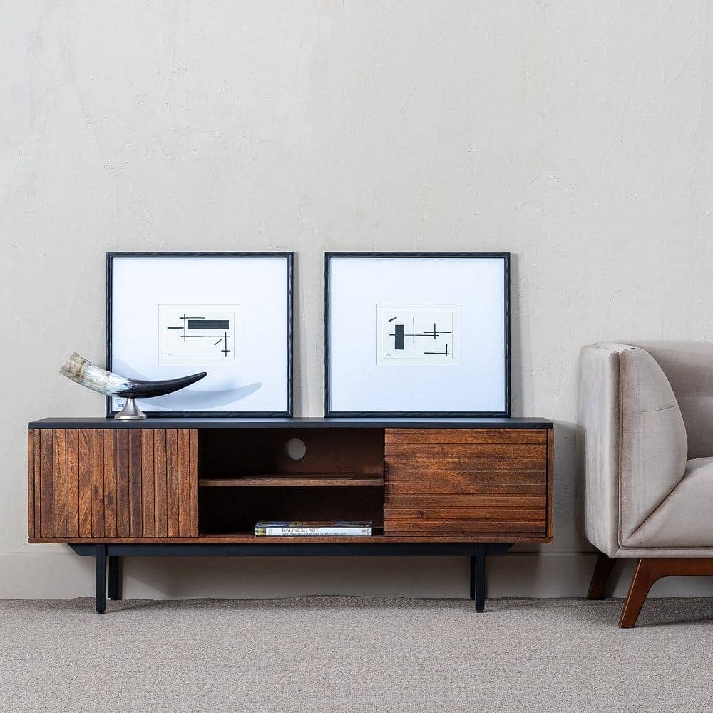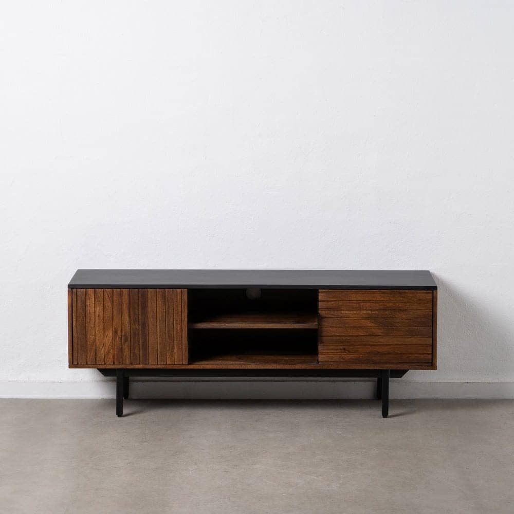 Este mueble TV marrón y negro en madera de mango y hierro es la elección perfecta para quienes buscan una pieza que combine estética y funcionalidad. Con 140 cm de largo, su diseño elegante y robusto transformará tu salón, añadiendo un toque de sofisticación a tu espacio. ¡Hazlo tuyo y disfruta de un ambiente moderno y acogedor!