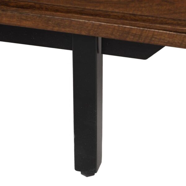Fabricado con madera de mango y una estructura de hierro, este mueble TV destaca por su contraste de colores en marrón y negro, creando un estilo industrial y moderno que se adapta perfectamente a cualquier tipo de decoración. Las medidas de 140 cm x 40 cm x 50 cm hacen de este mueble una opción ideal para salones de tamaño medio, proporcionando un amplio espacio para tus dispositivos y accesorios. Los huecos de 42×29 cm ofrecen almacenamiento adicional, mientras que las patas de 19 cm de altura le dan un toque estilizado, elevando la pieza sin perder robustez. Con un peso de 38 kg, este mueble no solo es resistente y duradero, sino también una pieza funcional que se convierte en el centro de atención de tu salón. ¡Renueva tu espacio con este mueble TV que combina diseño, calidad y versatilidad!