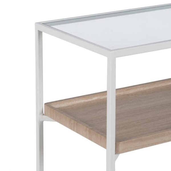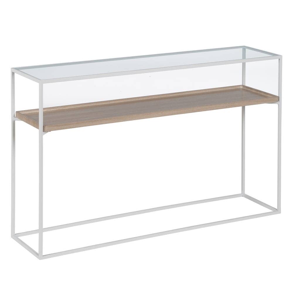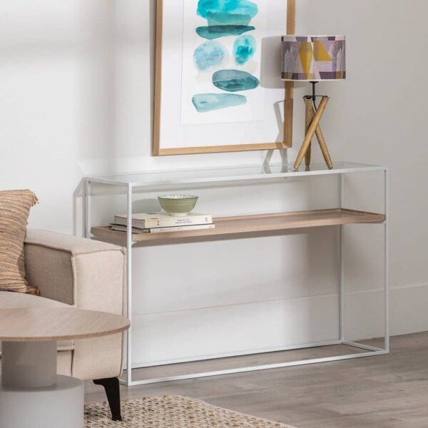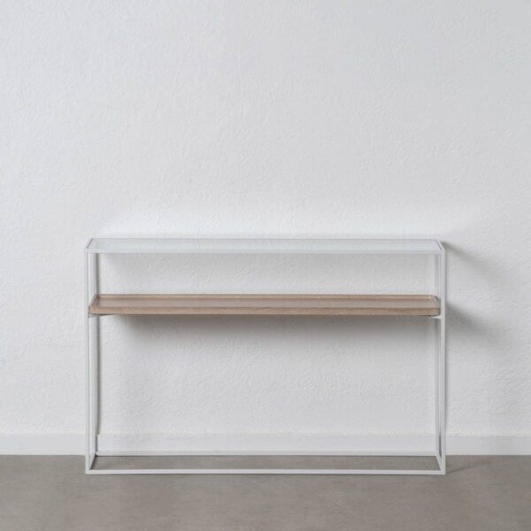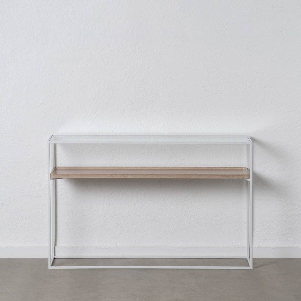 Con medidas de 120 cm x 30 cm x 75 cm, esta consola de madera de mango y DM es ideal para cualquier espacio. Su diseño en colores naturales y blancos se adapta perfectamente a diferentes estilos de decoración, aportando una sensación de luminosidad y frescura. El estante de 19 cm de altura ofrece un práctico espacio adicional para tus objetos decorativos. Con un peso de 15 kg, esta consola es robusta y estable, pero lo mejor de todo es que no requiere montaje, lo que te permitirá disfrutar de su belleza y funcionalidad al instante. ¡No pierdas la oportunidad de transformar tu hogar con esta pieza que irradia elegancia y calidez!