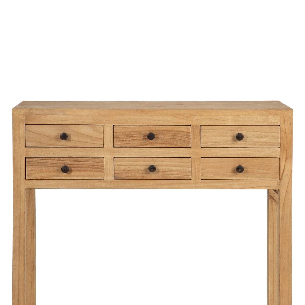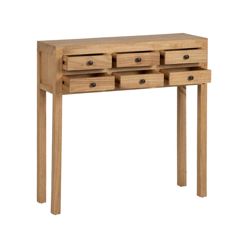 La consola de madera natural con detalles de ratán es una pieza única que destaca por su diseño elegante y atemporal. Fabricada en madera de mindi, ofrece una robustez inigualable y una estética cálida que combina con cualquier decoración. Sus 6 cajones, de 24×7 cm, proporcionan un almacenamiento práctico y discreto, mientras que las patas de 61 cm de altura le dan una apariencia ligera y estilizada. Con unas medidas de 85 cm x 26 cm x 85 cm, es perfecta para colocar en la entrada, el salón o el dormitorio. Además, su color natural y su versatilidad permiten que encaje en cualquier estilo de decoración, desde lo más rústico hasta lo más moderno. Disfruta de una pieza duradera y llena de carácter, fácil de mantener y que realzará la belleza de tu hogar. Atrévete a añadirla y transforma tu espacio con elegancia y funcionalidad.