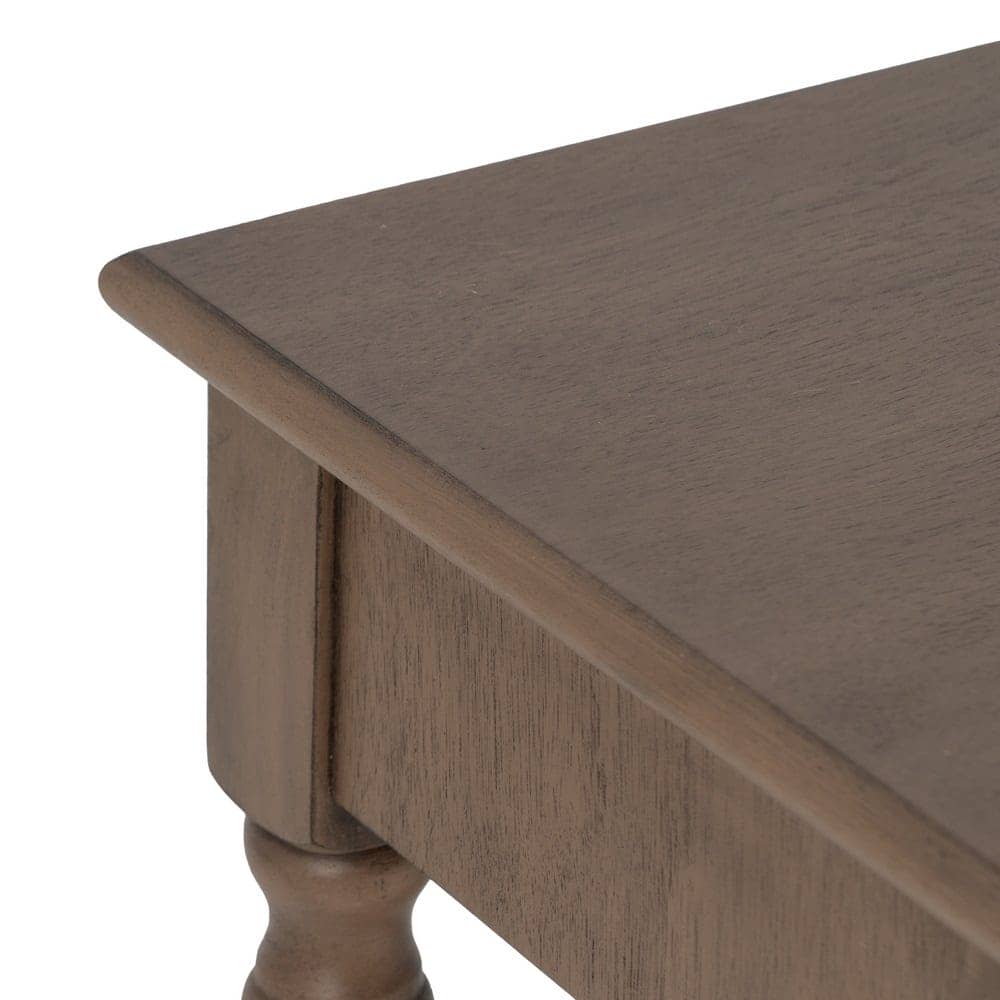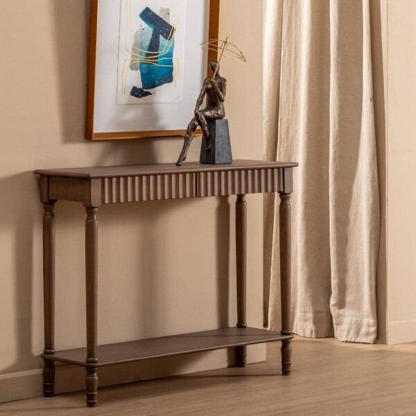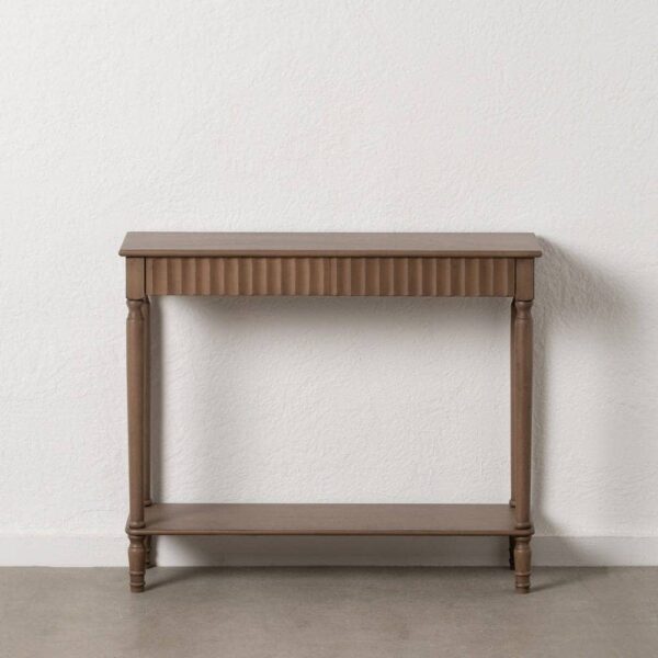 Esta consola marrón combina materiales de alta calidad, como el top y cajones de DM con una estructura de madera de pino, lo que garantiza su durabilidad y estabilidad. Sus medidas de 90 cm x 30 cm x 75 cm la hacen ideal para espacios pequeños o medianos, como recibidores, salones o pasillos. Los cajones de 40×8,5 cm ofrecen un excelente espacio de almacenamiento para tus objetos más pequeños. Además, su diseño compacto y las patas de 12,5 cm de altura brindan ligereza visual a la pieza, haciendo que encaje perfectamente en cualquier estilo de decoración. Con un peso de 13 kg, es una consola estable y fácil de montar. Atrévete a integrar esta pieza única en tu hogar y agrega un toque de sofisticación y funcionalidad.