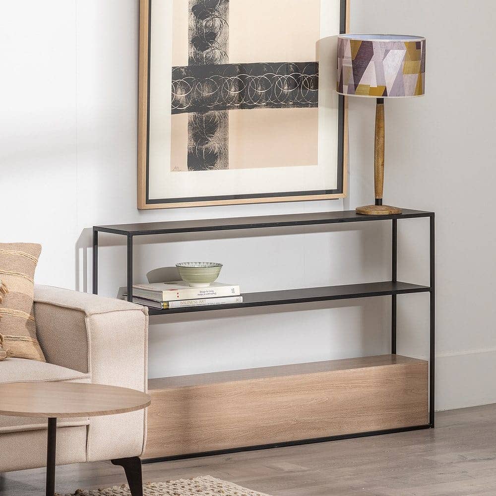 Con medidas de 122,5 cm x 22,5 cm x 75 cm, esta consola de DM y metal es ideal para espacios pequeños o medianos, ofreciendo un diseño compacto pero sólido y práctico. Su combinación de colores negro y natural encaja perfectamente con cualquier estilo decorativo, aportando elegancia y luminosidad. Lo mejor de todo es que no requiere montaje, por lo que podrás disfrutar de su estilo y funcionalidad en cuanto llegue a tu hogar. Con un peso de 18 kg, esta consola es resistente y fácil de integrar en tu decoración. ¡Hazla tuya y transforma tu hogar con esta pieza de diseño exclusivo y moderno!