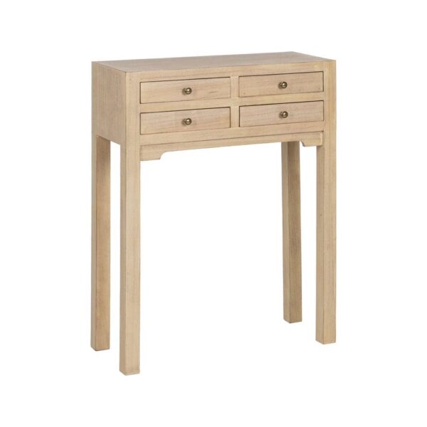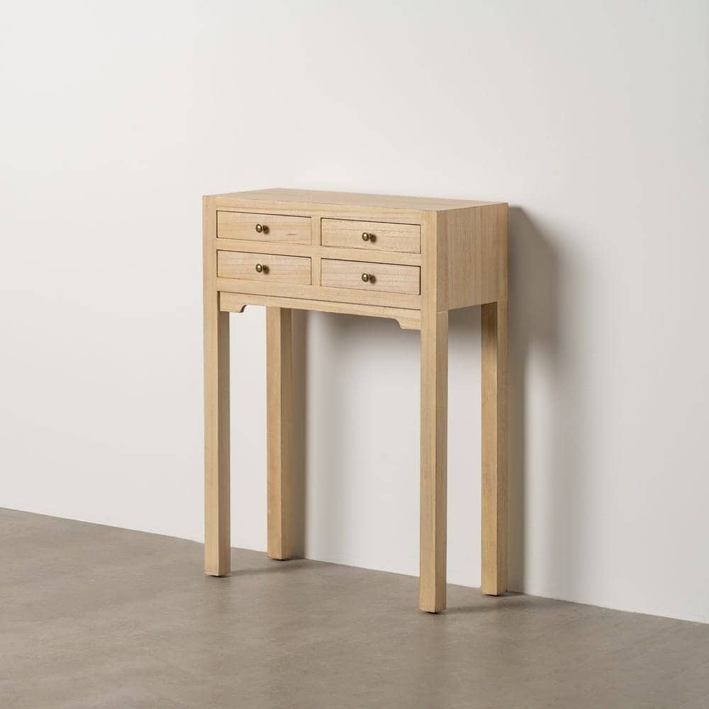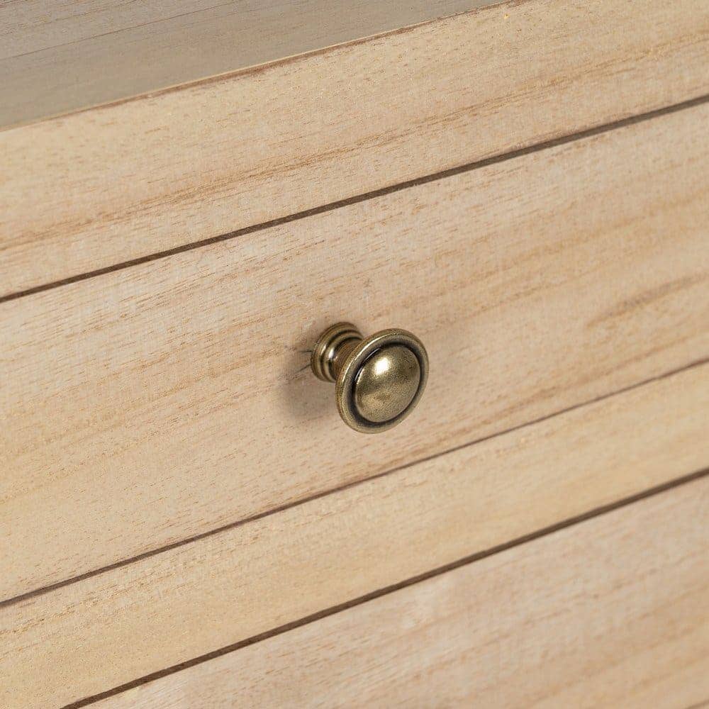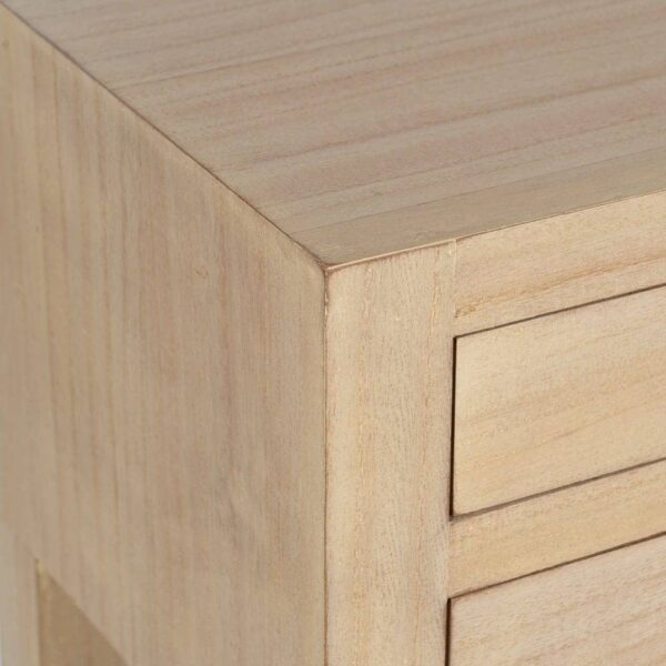 Material: estructura principal Dm – revestido con madera de paulonia. Altura patas: 65cm. Medida cajones: 26x24x6cm.