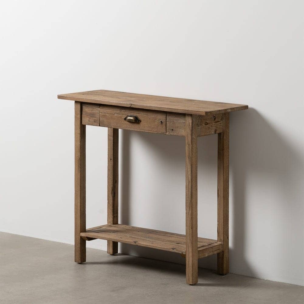 Con medidas de 90 cm x 34,5 cm x 81 cm, esta consola está fabricada con madera de abeto y DM, lo que le otorga una gran resistencia y durabilidad. Los cajones de 37×8,5 cm ofrecen un espacio ideal para organizar tus objetos de manera ordenada, mientras que el hueco de 63×53 cm permite guardar artículos de mayor tamaño. Con una altura de patas de 13 cm, la consola tiene un diseño elevado y aireado, perfecto para crear una atmósfera espaciosa. Su color natural y diseño atemporal hacen que se adapte a una variedad de estilos decorativos. Con un peso de 12 kg, es una pieza robusta, aunque fácil de manejar. Requiere montaje, pero su diseño versátil y práctico lo convierte en una excelente adición a tu hogar. ¡No pierdas la oportunidad de incorporar esta consola que irradia elegancia y funcionalidad!