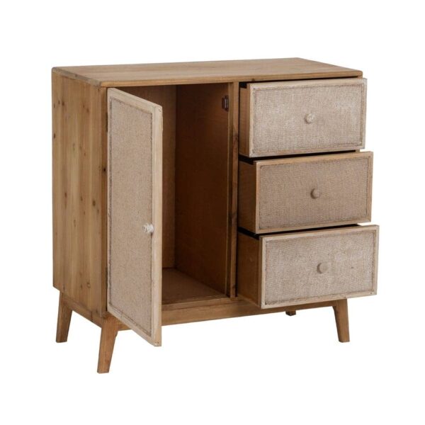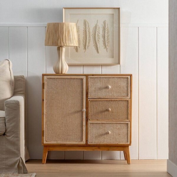 Ideal para espacios pequeños, este mueble se integra fácilmente en decoraciones naturales y minimalistas. Con unas patas elevadas de 15 cm, facilita la limpieza y aporta ligereza visual al ambiente. Su estructura en madera y DM garantiza durabilidad y resistencia. Añade encanto a tu entrada con esta pieza única y funcional.