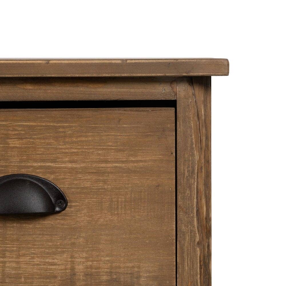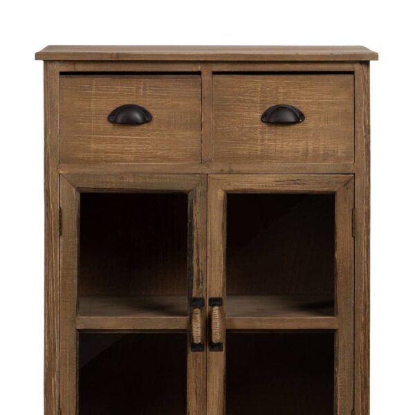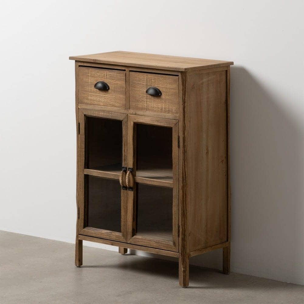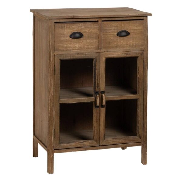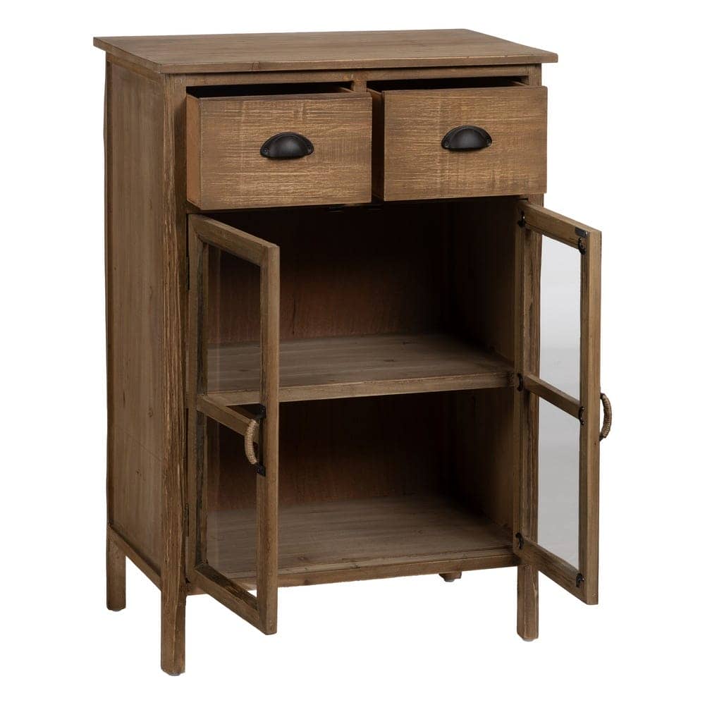 Fabricado en madera de abeto, este mueble auxiliar tiene un acabado natural que resalta la belleza auténtica de la madera. Con medidas de 64 cm x 37 cm x 92,5 cm, es perfecto para añadir almacenamiento adicional en espacios pequeños o medianos. Las puertas de 27×55 cm y los cajones de 26×16,5 cm ofrecen un amplio espacio para guardar tus pertenencias de manera ordenada. Además, las alturas de los huecos interiores son de 30 cm en la parte superior y 25 cm en la parte inferior, ofreciendo versatilidad para diferentes tipos de almacenamiento. Con patas de 11,5 cm de altura, este mueble tiene un diseño estilizado que maximiza el espacio. Con un peso de 14 kg, es resistente y práctico. Añade elegancia y funcionalidad a tu salón con este mueble auxiliar que combina diseño moderno y la calidez de la madera natural.