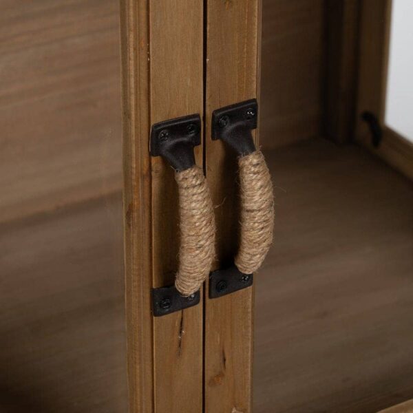 Fabricada en madera de abeto, esta vitrina destaca por su acabado natural que realza la belleza de la madera y le da una sensación cálida y acogedora. Con medidas de 72 cm x 39 cm x 116 cm, es perfecta para salones de tamaño medio. Las puertas de 31,5×40,5 cm ofrecen un fácil acceso a su interior, mientras que los cajones de 62,5×14,5 cm proporcionan un almacenamiento adicional para tus pertenencias. Los huecos interiores de 42 cm de altura son ideales para exhibir tus objetos más preciados. Las patas de 10,5 cm de altura le dan un toque moderno y elegante, elevando la pieza sin perder su robustez. Con un peso de 20 kg, es resistente y duradera, perfecta para un uso prolongado. Añade elegancia y organización a tu hogar con esta vitrina que combina diseño, calidad y funcionalidad en una sola pieza.