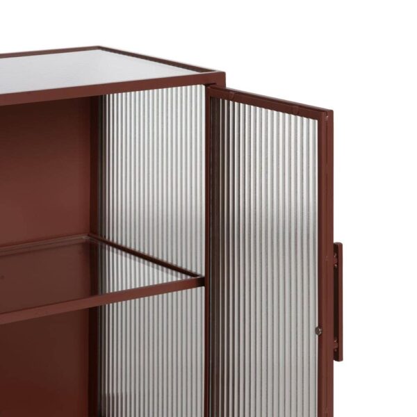 La vitrina teja de cristal con patas altas de 30 cm es el complemento ideal para un ambiente sofisticado y moderno. Con una estructura de hierro y cristal, su diseño minimalista se convierte en una pieza elegante que resalta cualquier espacio. Con puertas de cristal de 24×56 cm, tendrás la oportunidad de mostrar tus objetos decorativos favoritos con una elegancia única. El toque de color teja en su estructura añade calidez y carácter a tu hogar, mientras que las patas altas otorgan un aire ligero y moderno.